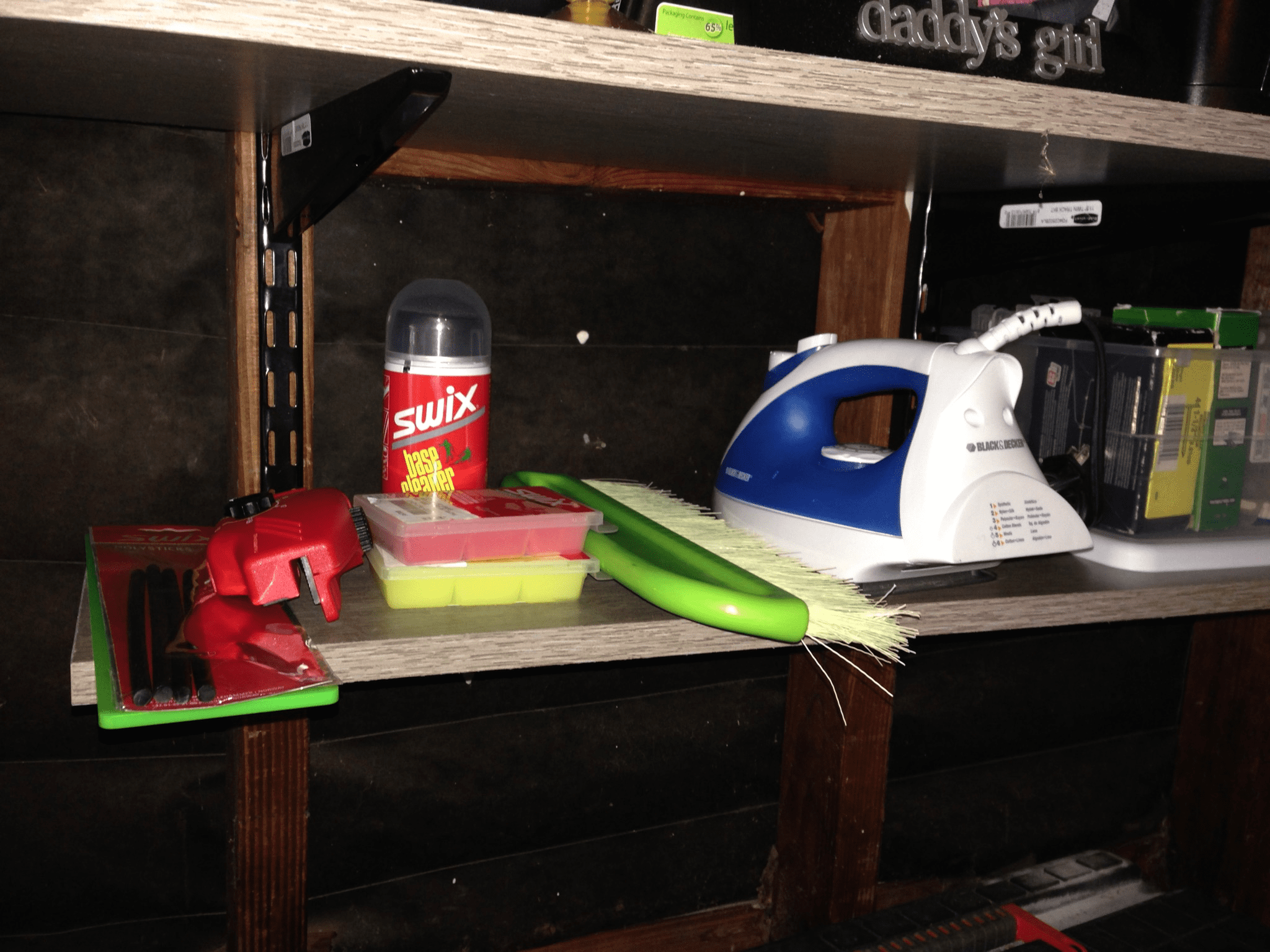 Now I got a 2nd hand iron from goodwill, some Ptex sticks, scrapers, hot wax and an edger. I plan on doing my own tuning and repairs from now on.